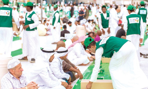 دشنت جمعية نماء الخيرية بمنطقة مكة المكرمة مشروعها الموسمي «إفطار صائم» لضيوف الرحمن في الحرم المكي بالتعاون مع لجنة السقاية والرفادة بإمارة منطقة مكة المكرمة والرئاسة العامة لشؤون المسجد الحرام والمسجد النبوي، بإجمالي 100 ألف وجبة داخل المسجد الحرام و300 ألف وجبة في ساحات الحرم المكي طيلة أيام الشهر الكريم.