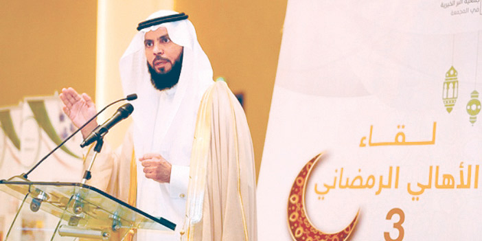 أقامت جمعية البر الخيرية بالمجمعة اللقاء الرمضاني الثالث لأهالي المجمعة المقيمين في مدينة الرياض، على شرف سمو الأمير عبد الرحمن بن عبد الله بن فيصل محافظ المجمعة، وذلك بقاعة الخزامى بالرياض، وبحضورعدد من أصحاب المعالي والفضيلة والسعادة والداعمين من أفراد ومؤسسات مانحة وأهالي وأعيان محافظة المجمعة.