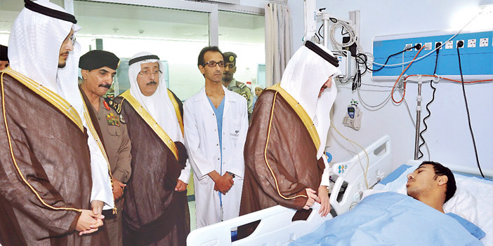 وأكَّد سموه خلال زيارته للمصابين (أن كل من يتعرض لجرح في سبيل حماية الدين ثم الوطن ومقدراته، عليه أن يفخر بهذه الإصابة، ويعتبرها وسام شرف يفاخر به بين أقرانه) وأضاف -حفظه الله- (استبسالكم في الدفاع عن الدين ثم المليك والوطن، وإصابتكم في سبيل ذلك هو بإذن الله رفعةٌ لكم في الدنيا والآخرة، فأنتم وزملاؤكم من وقف ضد أيادي العدوان والإرهاب لحماية هذا الوطن المبارك الذي قدسه الله بالحرمين الشريفين الذي هو قبلة الأمة الإسلامية جمعاء ومسجد رسول الرحمة محمد صلى الله عليه وسلم)، مضيفًا سموه: (أنتم أبطال ميدان العز والكرامة، وأنتم العين الساهرة لراحة الوطن والمواطن)، منوهًا سموه بالروح المعنوية العالية التي لمسها منهم.