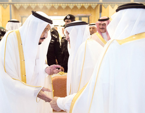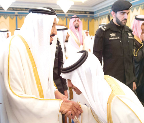 استقبل خادم الحرمين الشريفين الملك سلمان بن عبدالعزيز آل سعود -حفظه الله- أمس في قصر الصفا بمكة المكرمة عقب صلاة عيد الفطر المبارك، فخامة الرئيس عبد ربه منصور هادي رئيس الجمهورية اليمنية، وفخامة الرئيس محمد وحيد الرئيس السابق لجمهورية المالديف، ودولة رئيس وزراء لبنان سعد الحريري، ومعالي قائد العمليات العسكرية للتحالف الإسلامي العسكري لمحاربة الإرهاب الفريق أول متقاعد راحيل شريف، وأصحاب السمو الملكي الأمراء وأصحاب الفضيلة العلماء والمشايخ وأصحاب المعالي الوزراء وكبار المسؤولين من مدنيين وعسكريين الذين قدموا التهنئة له -أيده الله- بعيد الفطر المبارك. وقد تناول الجميع طعام الإفطار على مائدة خادم الحرمين الشريفين -رعاه الله-.