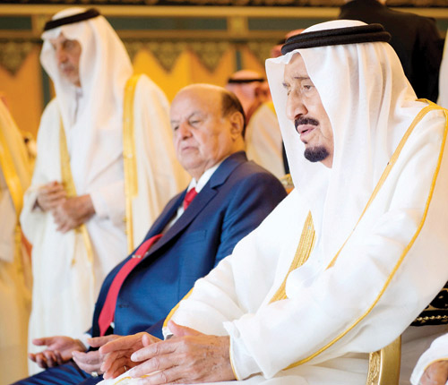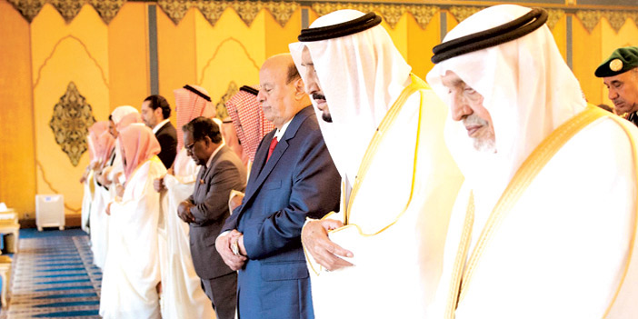 وقد أدى الصلاة مع خادم الحرمين الشريفين -أيده الله- فخامة الرئيس عبد ربه منصور هادي رئيس الجمهورية اليمنية، وفخامة الرئيس محمد وحيد الرئيس السابق لجمهورية المالديف، ودولة رئيس وزراء لبنان سعد الحريري، ومعالي قائد العمليات العسكرية للتحالف الإسلامي العسكري لمحاربة الإرهاب الفريق أول متقاعد راحيل شريف.