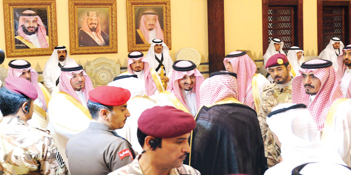 استقبل صاحب السمو الملكي الأمير فيصل بن خالد بن عبد العزيز أمير منطقة عسير, وصاحب السمو الملكي الأمير منصور بن مقرن بن عبدالعزيز نائب أمير المنطقة في صالة الاحتفالات الرئيسة بالخالدية في أبها أمس , جموع المهنئين بعيد الفطر المبارك من المحافظين ورؤساء المراكز ومنسوبي وزارة الداخلية وأهالي المنطقة بمناسبة عيد الفطر المبارك. وبادل سموهما الجميع التهاني والتبريكات بهذه المناسبة, سائلين الله العلي القدير أن يديم على هذه البلاد أمنها واستقرارها في ظل القيادة الرشيدة. عقب ذلك استمع الجميع إلى عددٍ من القصائد الشعرية بهذه المناسبة, ثم تناول الجميع طعام الغداء على مائدة سمو أمير المنطقة.