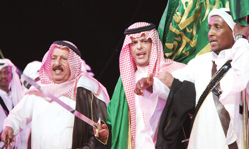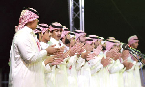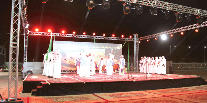 وقدّم «المسند» شكره وتقديره لأعضاء اللجنة على عملهم المستمر لإقامة الاحتفال السنوي بأفضل صورة، بعدها جاء أوبريت «قصة كفاح» من كلمات الشاعر خالد الفايز وإنشاد كل من هزاع المهلكي وصالح العبداللطيف ومحمد أباحسين، ثم تناول الجميع طعام العشاء، بعدها قدم فلكلور العرضة السعودية التي شارك فيها المسؤولين والأهالي كما قدمت الفرقة فلكلور السامري وأقيمت المحاورة الشعرية في ساحة الاحتفالات.