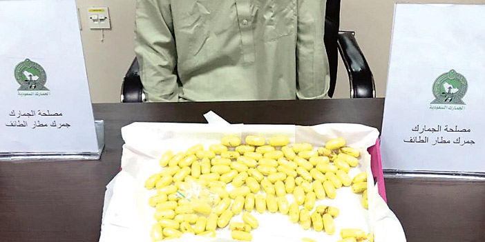 تمكّن جمرك مطار الطائف من إحباط محاولتين لتهريب (1.468) جراما من مادة «الهيروين» المخدرة عُثر عليها مُخبأة مع مسافرَين قدما إلى المملكة عبر المطار. وقال أحمد المالكي مدير جمرك مطار الطائف، انه عند إجراء عملية الكشف والمعاينة المعتادة على ركاب إحدى الرحلات القادمة إلى المملكة اشتبه المراقب الجمركي بأحد ركاب الرحلة، وتم إخضاعه للتفتيش الذاتي، وذلك بعرضه على جهاز فحص الأحشاء، وبالفعل أكدت نتيجة الفحص إيجابيته وعُثر بداخل أحشائه على (80) كبسولة تحتوي جميعها على (628) جراما من مادة «الهيروين» المخدرة .