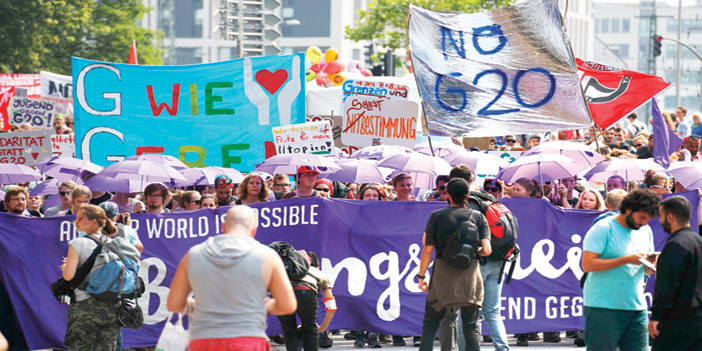 الى ذلك، تخللت قمة العشرين تظاهرات عنيفة حيث أثار متظاهرون حالة من الفوضى بعد ان قاموا بإحراق سيارات وتهشيم نوافذ متاجر وإطلاق مواد مشتعلة على مروحيات تابعة للشرطة إضافة إلى اتلاف إطارات سيارات الوفد الكندي، وقد أعلنت الشرطة الألمانية مساء الجمعة عن إصابة 196 شرطيا خلال أحداث العنف التي صاحبت المظاهرات الرافضة لانعقاد قمة العشرين في هامبورج.وأوضحت الشرطة أنه لا توجد حالات خطيرة بين هذه الإصابات، ولم تتمكن الشرطة ولا قوات الإطفاء حتى الآن من الإدلاء ببيانات حول أعداد المصابين بين المتظاهرين.من جانبه، قال متحدث باسم قوات الإطفاء إن المتظاهرين لديهم مسعفون ما جعلهم في غير حاجة إلى مساعدات خارجية في الكثير من الحالات.ولم يتم التمكن من التواصل مع اللجنة المعروفة باسم لجنة تحقيقات العشرين، التي تجري اتصالات مع الناشطين وتجمع بيانات عن المصابين.كما لم تتمكن الشرطة من الإدلاء ببيانات عن عدد السيارات التي تعرضت لإضرام النار فيها، فيما قدرت قوات الإطفاء عددها ببضع عشرات، وفقا لمتحدث أشار إلى أن 15 سيارة منها في شارع إلب شاوزيه.