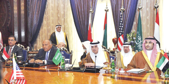 وأكد شكري خلال الاجتماع على أن التوصل إلى تسوية لهذه الأزمة يظل رهناً بتفاعل الدوحة الإيجابي مع هذه المطالب وتوقفها عن دعم الإرهاب والجماعات الإرهابية. وأضاف أبو زيد أن وزير الخارجية أوضح أن مشاركة مصر في هذا الاجتماع إلى جانب الدول العربية الأخرى تأتي في إطار العلاقات الخاصة التي تربط كافة هذه الدول بالولايات المتحدة، كما وفي إطار ما تم تناوله خلال قمة الرياض واتصالاً بالجهد الأمريكي للقضاء على الإرهاب.