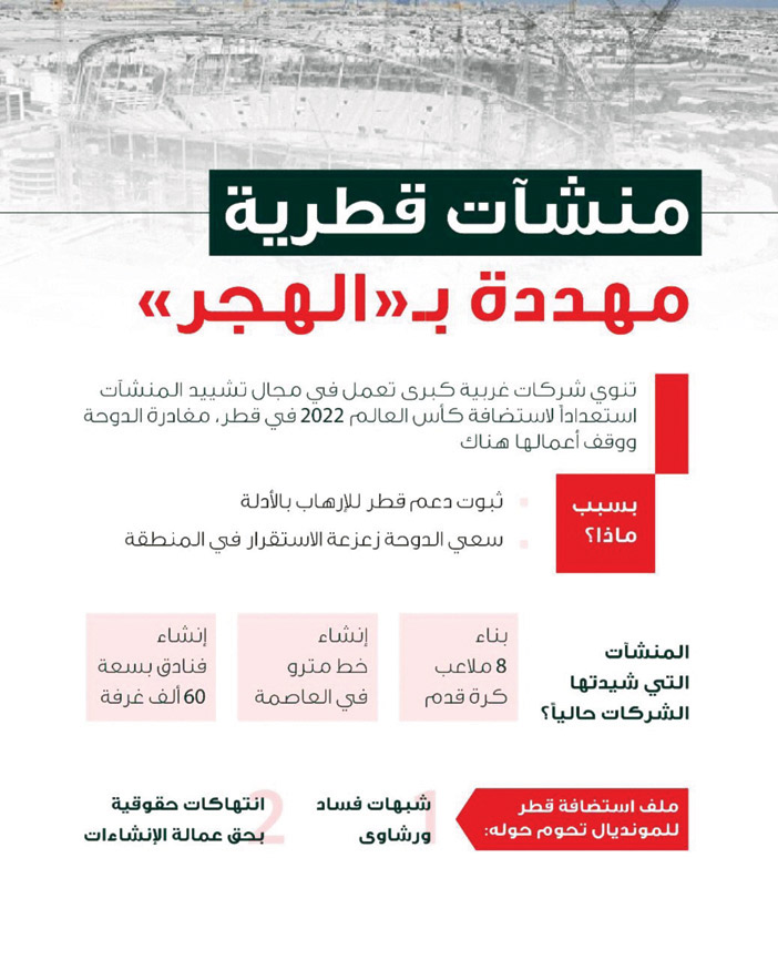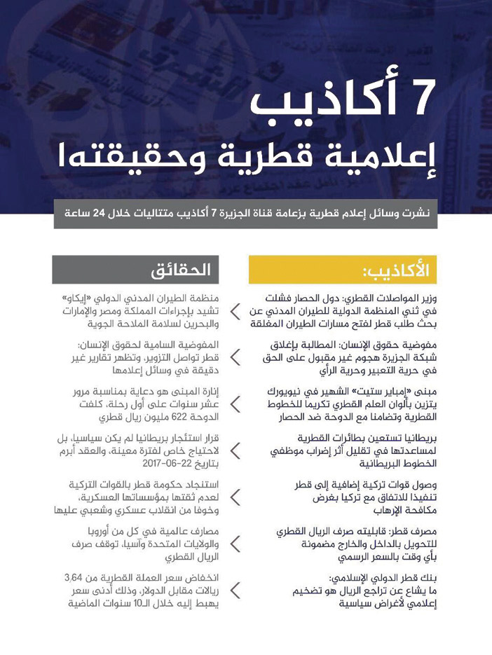 «الرباعية العربية».. ربطت تسوية الأزمة رهن التفاعل الإيجابي للدوحة مع مطالب أشقائها.. بيد أن التعنت القطري ومحاولات نظامه «الفاشلة» لحل الأزمة دون توقف الدوحة عن دعم الإرهاب وتمويله واحتضانه.. لن يلقى استجابة لدى الدول الداعية لمكافحة الإرهاب.. بما يُكبد الدوحة خسائر أكبر مما نتجت عن إجراءات دول «الرباعية العربية» ضدها حفاظاً على أمنها الوطني والقومي من العبث القطري.