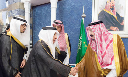 فقد استقبل -رعاه الله- صاحب السمو السيد أسعد بن طارق آل سعيد نائب رئيس الوزراء لشؤون العلاقات والتعاون الدولي الممثل الخاص لجلالة سلطان عُمان يرافقه معالي وزير التنمية الاجتماعية الشيخ محمد بن سعيد الكلباني، وسفير سلطنة عمان لدى المملكة الدكتور أحمد بن هلال البوسعيدي وعدد من المسؤولين. كما استقبل خادم الحرمين الشريفين -حفظه الله- كلاً من معالي الشيخ فيصل السعود المحمد الصباح، ومعالي الشيخ أحمد العبدالله الأحمد الصباح، ومعالي الشيخ خالد الجراح الصباح نائب رئيس الوزراء وزير الداخلية بدولة الكويت، ومعالي الشيخ أحمد نواف الأحمد الصباح، ومعالي الشيخ محمد عبدالله المبارك الصباح وزير الدولة لشؤون مجلس الوزراء وزير الإعلام بالوكالة بدولة الكويت، والشيخ ثامر الجابر الأحمد الصباح سفير الكويت لدى المملكة. واستقبل الملك المفدى معالي الممثل والمبعوث الخاص لجلالة ملك الأردن الدكتور باسم عوض الله، وعدداً من السفراء المعتمدين لدى المملكة. وعبر الجميع عن بالغ عزاء ومواساة قادة دولهم لخادم الحرمين الشريفين الملك سلمان بن عبدالعزيز آل سعود، سائلين الله سبحانه وتعالى أن يتغمد الفقيد بواسع رحمته ويسكنه فسيح جنته.