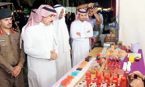 عقب ذلك تجول في المعرض المصاحب للفعاليات والذي يحتوي على مشاركة الأسر المنتجة ومحلات لعروض المنتجات والتي يشارك فيه شباب وشابات الوطن.