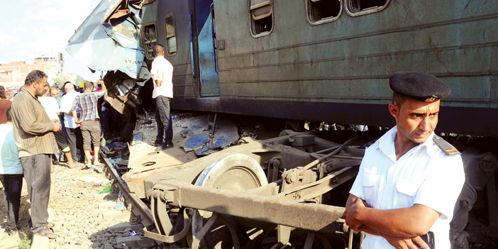 توفي 49 شخصاً على الأقل وأصيب 179 آخرون أمس الجمعة جراء تصادم قطارين للركاب بمدينة الإسكندرية الساحلية بشمال البلاد وذلك في أحدث حلقة في سلسلة حوادث دامية شهدتها السكك الحديدية في مصر خلال السنوات الأخيرة. وقالت هيئة السكك الحديدية إن الحادث وقع بعد ظهر أمس عندما اصطدم قطار قادم من القاهرة إلى الإسكندرية بمؤخرة قطار قادم من بورسعيد إلى الإسكندرية بالقرب من محطة منطقة خورشيد بالإسكندرية. وأضافت أن الحادث تسبب في انقلاب جرار القطار القادم من القاهرة وعربتين من مؤخرة القطار القادم من بورسعيد. وقالت وزارة الصحة في بيان إن 75 عربة إسعاف شاركت في نقل المصابين إلى مستشفيات عامة ومستشفيات تابعة للشرطة والجيش في الإسكندرية. ولم يعرف على الفور سبب الحادث لكن مصادر أمنية رجحت أن يكون الحادث قد نجم عن خطأ في تحويل مسارات القطارات. وقال وزير النقل هشام عرفات للتلفزيون المصري إن الحادث ناجم عن «خطأ بشري»، وأضاف أن الوزارة تبذل جهودا للاعتماد بشكل أكبر على التكنولوجيا في قطاع السكك الحديدية. وقال النائب العام نبيل صادق في بيان إنه أمر بانتقال فريق من النيابة العامة إلى موقع الحادث لإجراء المعاينة اللازمة. وأمر أيضا بندب لجنة هندسية للانتقال إلى الموقع وإجراء المعاينة اللازمة للوقوف على أسباب الحادث وتحديد المسؤول عنه.