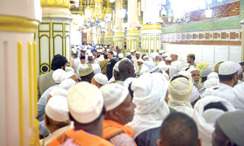 رصدت عدسة وكالة الأنباء السعودية «واس» المشاهد الإيمانية من داخل المسجد النبوي وتهافت قلوب الزائرين إلى رحاب الروضة الشريفة بالحرم النبوي هذه الأيام, في مشاهد إيمانية فيّاضة, وفرح يغمر الوجوه, وألسن تبتهل بالسلام والدعاء في البقعة الطاهرة للسلام على المصطفى صلى الله عليه وسلم وعلى صاحبيه - رضوان الله عليهما - في سكينة وخشوع. ويتولى منسوبو قوة أمن المسجد النبوي, ووكالة الرئاسة العامة لشؤون المسجد النبوي الشريف تنظيم حشود الزائرين في المواجهة الشريفة, خلال أوقات الزيارة المخصصة, والقيام بأعمال الإرشاد والتوعية الدينية, والحفاظ على الأمن, وتفادي حدوث حالات الازدحام, وانسيابية الدخول والخروج من الأبواب المؤدية إلى روضة من رياض الجنة.