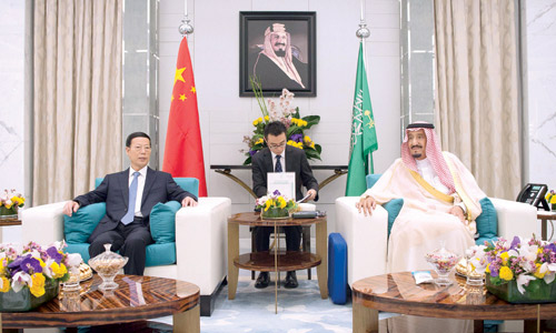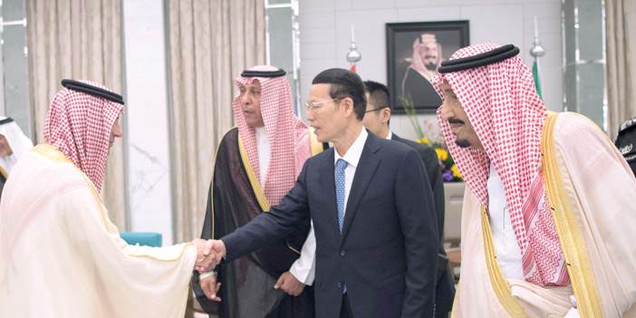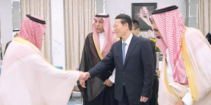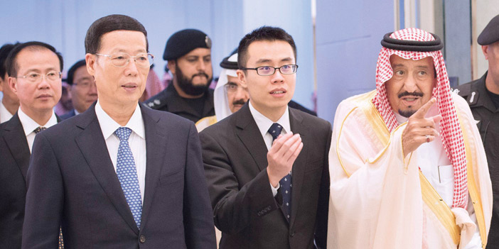 أقام خادم الحرمين الشريفين الملك سلمان بن عبدالعزيز آل سعود -حفظه الله- في جدة مساء أمس مأدبة عشاء تكريماً لمعالي نائب رئيس مجلس الدولة بجمهورية الصين الشعبية تشانغ قاو لي. وقد رحب خادم الحرمين الشريفين -حفظه الله- بمعالي نائب رئيس مجلس الدولة الصيني والوفد المرافق له، فيما أعرب معاليه عن بالغ شكره لخادم الحرمين الشريفين على ما وجده في المملكة من حفاوة وتكريم. كما صافح معاليه أصحاب السمو الأمراء والمعالي الوزراء والقادة العسكريين.
