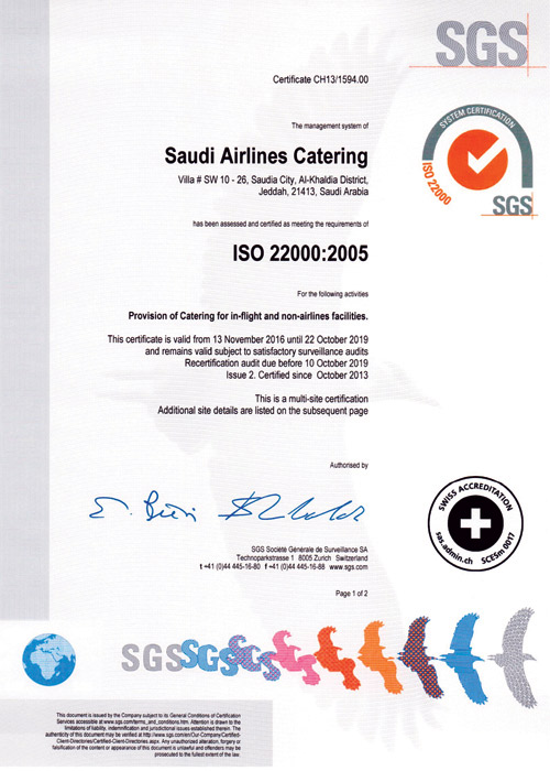 وتحقيقاً للهدف المحدد في إطار مشروع الإعاشة للحجاج والمعتمرين بتوفير المنتج الغذائي الآمن وِفق آلية علمية وصحية متكاملة وتفادي الطرق التقليدية السابقة في إعداد وتجهيز الوجبات وما كان يكتنفها من ملاحظات سلبية، وتعزيزاً لدورنا الذي بدأناه منذ عام 2013م بتقديم عشرات الآلاف من الوجبات للحجاج بمستوىً فائق الجودة، تحرص شركة الخطوط السعودية للتموين على تقديم المنتج الغذائي المتميز بأعلى المواصفات وبكل يُسر وسهولة من خلال وجبات يتم تجهيزها بعناية فائقة وتجميدها بأسلوب علمي ثم نقلها في برادات خاصة لتتم بعد ذلك وفي موقع التقديم عملية إذابة الثلج والتسخين بطريقة معينة طبقاً لمقتضيات السلامة الغذائية، عِلماً بأن الشركة تحرص على تقديم خدمات التدريب والاستشارات الفنية والتشغيلية عن كيفية مناولة وحفظ الوجبات وِفق أُسس علمية دقيقة وذلك لكوادر الخدمة التابعة لمؤسسات الطوافة والشركات العاملة في خدمة الحجاج والمعتمرين، إضافة إلى الخدمات اللوجستية لنقل وحفظ الوجبات إلى غير ذلك من مراحل الإنتاج والمناولة التي تتم طبقاً لمعايير وأنظمة الأيزو العالمية.