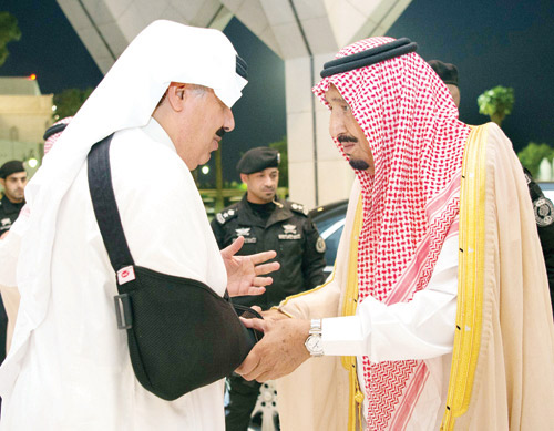 وصل بحفظ الله ورعايته خادم الحرمين الشريفين الملك سلمان بن عبدالعزيز آل سعود أمس الخميس التاسع من شهر ذي الحجة ، إلى منى ليشرف -أيده الله- مباشرة على راحة حجاج بيت الله الحرام وما يقدم لهم من خدمات وتسهيلات ليؤدوا مناسكهم بكل يسر وسهولة وأمان. ولدى وصول خادم الحرمين الشريفين قصر منى كان في استقباله -حفظه الله-، صاحب السمو الأمير خالد بن فهد بن خالد، وصاحب السمو الملكي الأمير طلال بن سعود بن عبدالعزيز، وصاحب السمو الملكي الأمير خالد بن بندر بن عبدالعزيز مستشار خادم الحرمين الشريفين، وصاحب السمو الملكي الأمير متعب بن عبدالله بن عبدالعزيز وزير الحرس الوطني، وصاحب السمو الأمير فهد بن عبدالله بن عبدالعزيز بن مساعد، وصاحب السمو الأمير الدكتور خالد بن فيصل بن تركي وكيل الحرس الوطني للقطاع الغربي، وصاحب السمو الملكي الأمير تركي بن محمد بن فهد بن عبدالعزيز المستشار في الديوان الملكي، وصاحب السمو الملكي الأمير محمد بن عبدالرحمن بن عبدالعزيز نائب أمير منطقة الرياض، وصاحب السمو الملكي الأمير عبدالعزيز بن سعود بن نايف بن عبدالعزيز وزير الداخلية رئيس لجنة الحج العليا، وصاحب السمو الملكي الأمير سعود بن سلمان بن عبدالعزيز، وعدد من المسؤولين.