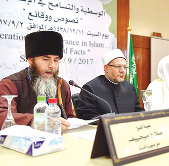 وفي كلمته قال فضيلة مفتي جمهورية الشيشان الشيخ صلاح مجييف: إن الله سبحانه وتعالى وسم الأمة الإسلامية بالوسطية فنالت بذلك أعلى تكريم من العليم الحكيم، مذكّراً بقول الرسول الكريم: «هلك المتنطعون، هلك المتنطعون، هلك المتنطعون» أي المتشددون والمتكلِفون فيما لا ينبغي وفي غير موضعه الصحيح.