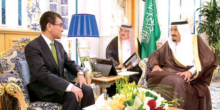 استقبل خادم الحرمين الشريفين الملك سلمان بن عبدالعزيز آل سعود -حفظه الله- في مكتبه بقصر السلام في جدة امس، معالي وزير خارجية اليابان تارو كونو.