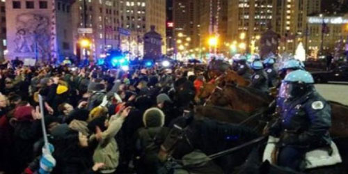 وقالت إدارة الشرطة على موقع تويتر «هذا الاحتجاج لم يعد يعتبر سلميا»، مطالبة المتظاهرين بمغادرة منطقة بوسط المدينة مشيرة إلى أن «المتظاهرين يتجاهلون الأوامر بإخلاء الطريق».