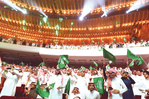 كما نتمنى من خلال هذا الحفل الوطني الكبير الذي يجمع 11 مطربا من نجوم الغناء وما يرافقه من أوبريت وطني ضخم وفعاليات عديدة مثمرة ومسلية، أن نسعد الجمهور السعودي الغالي، الذي سيعيش مع نجومه المفضلين فرحة الاحتفال بالوطن ليلة من العمر».