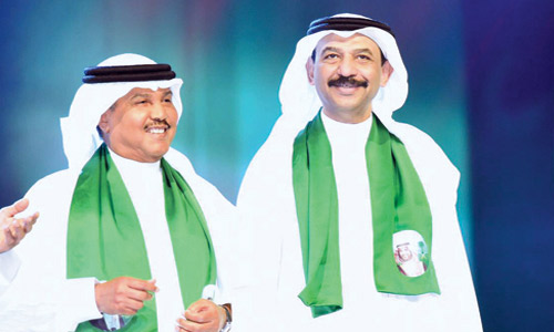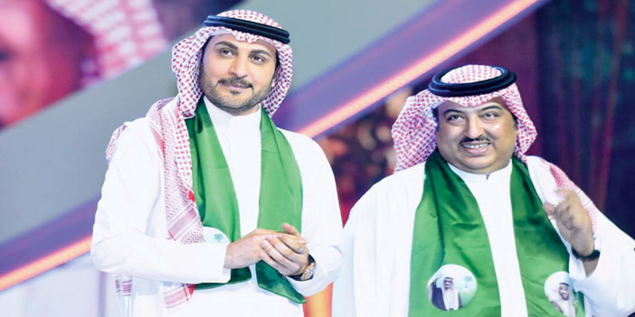 الفنان ماجد المهندس غنى «يمر الوقت» و«هدوء» و«يناديك» و«استبشرت بالخير»، وكثيرا ما تفاعل معه الجمهور، فيما صعد على المسرح الفنان الكويتي عبدالله الرويشد ليغني رائعة «رحلتي» و«عويشق» و«قلبي معك»، مقدما تهانيه لخادم الحرمين الشريفين وسمو ولي عهده الأمين وللشعب السعودي بهذه المناسبة.