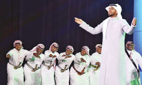 رعى معالي وزير الثقافة والإعلام الدكتور عواد بن صالح العواد الحفل الذي أقامته وزارة الثقافة والإعلام في مركز الملك فهد الثقافي في الرياض مساء أمس الأول بمناسبة اليوم الوطني السابع والثمانين للمملكة. وخلال الحفل الذي بدأ بتلاوة آيات من القرآن الكريم، ألقى معالي وزير الثقافة والإعلام كلمة رفع في مستهلها خالص التهاني والتبريكات لخادم الحرمين الشريفين الملك سلمان بن عبدالعزيز آل سعود ولصاحب السمو الملكي الأمير محمد بن سلمان بن عبدالعزيز ولي العهد نائب رئيس مجلس الوزراء وزير الدفاع -حفظهما الله- وللشعب السعودي الكريم بمناسبة اليوم الوطني السابع والثمانين للمملكة. وقال معاليه:» تحية محبة وإجلال لهذا الوطن الشامخ.. تهنئة خاصة في يومه المجيد السابع والثمانين وفرحة كبرى تغمر قلوبنا في بلد الأمن والأمان والخير والاستقرار». وأضاف:» إن حلول الذكرى السابعة والثمانين في هذا اليوم المبارك مناسبة عزيزة على قلوبنا نستذكر فيها عظمة ما قام به مؤسس هذا الوطن الشامخ الملك عبدالعزيز بن عبدالرحمن الفيصل آل سعود -رحمه الله- وجزاه عنا خير الجزاء، لتأسيس وطن نتنعم به، ودولة متجددة ينعم برخائها السعوديون جيلاً بعد جيل، تحت راية الإسلام الخالدة «لا إله إلا الله محمد رسول الله»، ونستذكر كذلك ما قام به أبناؤه الملوك الكرام وصولاً لعهد قائدنا خادم الحرمين الشريفين الملك سلمان بن عبدالعزيز، وولي عهده الأمين أدام الله عزهما. وأكد معاليه أن وزارة الثقافة والإعلام ومنسوبيها سعدت وعملت بكل فخر ومحبة مع المثقفين والإعلاميين في بادرة تفاعلية تحفز شباب هذا الوطن من الموهوبين والموهوبات في ذائقتهم الفنية والإبداعية ليتنافسوا من خلال مسابقة (موهبتي للسعودية)». وأضاف:» كان إعلان المسابقات للتعبير عن حب الوطن في مجالات (القصة القصيرة، والفيلم، والقصيدة الفصحى، والقصيدة الشعبية، واللوحة الفنية، والأغنية الوطنية)، ورصد لها جوائز مالية تزيد عن مليونين ونصف المليون ريال تشمل جميع مناطق المملكة ونشكر الرعاة. وأوضح أن هذه المسابقات أوجدت حركة ثقافية وفنية جميلة في مناطق المملكة وكذلك من خلال الموقع الالكتروني وأبرزت جملة من مواهب أبنائنا وبناتنا الإبداعية للتعبير عن محبتهم لهذا الوطن المعطاء. وقدم معالي الوزير العواد الشكر والتقدير لكل المشاركين الذين عبروا عن تفاعلهم بحب الوطن في جميع مناطق المملكة، وهم يملون الجائزة الكبرى والفخر للجميع فالكل فاز بحب وطنه ولا يوجد خاسر. كما شكر معاليه أعضاء اللجان والمنسقين في المناطق ومنسوبي الوزارة وخارجها الذين بذلوا جهداً سخياً في سرعة التنفيذ لإنجاح هذه الفعاليات حباً ووفاء وإخلاصاً لوطن الخير واعتزازاً وفخراً بقيادتنا الرشيدة. وسأل معاليه الله أن يعيد علينا هذه المناسبة ووطنا في عز وشموخ ورقي في المجالات كافة، وأن يديم علينا نعمة الأمن والأمان وأن يحفظ خادم الحرمين الشريفين وسمو ولي عهده الأمين. كما دعا معاليه الله عز وجل أن يتغمد الملك عبدالعزيز بن عبدالرحمن مؤسس وموحد وباني هذا الكيان العظيم، بواسع رحمته وأن يسكنه فسيح جناته وأن يجزيه عنا خير الجزاء. واشتمل الحفل، على العديد من الفقرات تنوعت بين الشعر النبطي والفصيح، وعروض تراثية، وأنغام وطنية، وتكريم الشخصية الوطنية المذيع خالد اليوسف رحمه الله. كما تخلل الحفل أوبريتا بعنوان (سلمان حبيب المملكة)، وأوبريتا عن سمو ولي العهد بعنوان (وجه السعد)، وتم تكريم المشاركين في مسابقة (موهبتي للسعودية) والرعاة. وفي ختام الحفل شارك معالي وزير الثقافة والإعلام الدكتور عواد بن صالح العواد في العرضة السعودية. وكان معاليه قد تجول في المعارض المصاحبة للحفل للفن التشكيلي، والصور الفوتوغرافية، والكاريكاتير، والخط العربي. وعقب الحفل أدلى معالي الوزير العواد بتصريح صحفي أوضح فيه أن مسابقة (موهبتي للسعودية) شارك فيها الآلاف من بنات وأبناء الوطن الموهوبين في المجالات كافة (القصة والشعر الشعبي والشعر الف