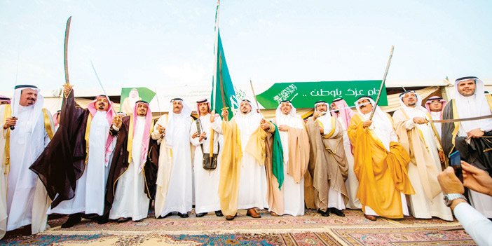 وبيّن صاحب السمو الملكي الأمير الدكتور فيصل بن مشعل بن سعود بن عبدالعزيز أمير منطقة القصيم, أن هذا اليوم هو يوم يجب أن نجعل منه مناسبة أكثر فاعلية عبر ربط الأجيال بعوامل النمو والتطور وأن يكون حافزاً ومنهجاً للعمل والإنتاج لبذل مزيد من الجهود والتفاني في خدمة الوطن ومن أجل رفعته ومواصلة بنائه على نهج آبائنا الأبطال الذين سطروا أروع الملاحم البطولية من أجل أن نحيا ونعيش فيه بكل دفء وعطاء, مؤكداً سموه أنه قد حان وقت رد الجميل ومبادلة الوطن هذا العطاء وتحفيز الذات من أجل استمرار التنمية, مبيناً سموه أن لدينا فرصة مثالية لنكون من الدول المتقدمة عبر الترتيب العالمي اقتصادياً وتنموياً عبر أيدي شبابنا وفتياتنا الذين يقدمون كل غالٍ ونفيس وجهد لازدهار وطنهم ورفعته, وأوضح سموه أن اليوم الوطني يوم تاريخي يجب أن نستلهم منه ما قام به أجدادنا من بطولات انتهت بتوحيد هذه البلاد وجعلها تتمركز في مسار أممي لائق بها, مؤكداً أن ذلك يجب أن يكون حافزاً للاتجاه نحو المستقبل عبر كل المعطيات التنموية، التي وضعتها تلك الملحمة بين المواطنين وقيادتهم الرشيدة لسنوات وتحولت إلى حصاد وطن عملاق يزدهر ويتطور ويحقق المنجزات العملاقة, مؤكداً سموه أننا في هذا اليوم تحولت عقولنا وقلوبنا ودمائنا إلى اللون الأخضر في وطن يستحق منّا كل تضحية وولاء ومهما قدمنا لهذا الوطن فلن نوفيه حقه, مؤكداً أن راية لا إله إلا الله ستظل خفاقة بقيادة خادم الحرمين الشريفين الملك سلمان بن عبدالعزيز وسمو ولي عهده الأمين - حفظهما الله - مبيناً أن الآباء والأجداد قد صنعوا هذا المجد وتعبوا به ووحدوه جغرافياً حتى باتت الدولة حفظها الله دولة عظيمة بقيادتها ومبادئها عبر تحكيم كتاب الله وسنة رسوله ثم بشعبها العظيم الوفي الكريم الذي أصبح صخرة قوية تتحطم عليها كل مؤامرات الأعداء, سائلاً المولى عز وجل أن يديم علينا نعمة الأمن والأمان والازدهار وأن يعيده علينا وعلى الموطنين والمواطنات وعلى كل من يحب هذه البلاد المقدسة الطاهرة بكل خير ومحبة وصحة وسلامة وأن يديم أفراح وعزة هذا الوطن.