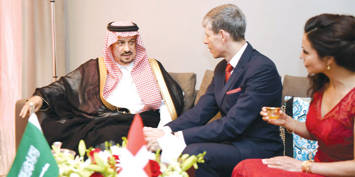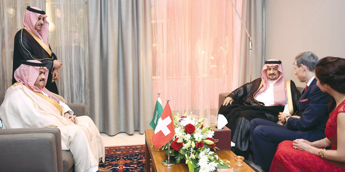 شرّف صاحب السمو الملكي الأمير فيصل بن بندر بن عبدالعزيز أمير منطقة الرياض مساء أمس حفل سفارة جمهورية سويسرا بمناسبة ذكرى اليوم الوطني لبلادها، وذلك بمنزل السفير بحي السفارات الرياض.