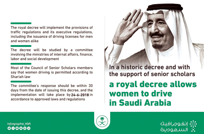 أكد صاحب السمو الملكي الأمير عبدالعزيز بن سعود بن نايف بن عبدالعزيز وزير الداخلية أن الأمر السامي بتطبيق أحكام نظام المرور على الذكور والإناث قرار تاريخي، ويحسب لخادم الحرمين الشريفين الملك سلمان بن عبدالعزيز آل سعود، ولصاحب السمو الملكي الأمير محمد بن سلمان بن عبدالعزيز ولي العهد نائب رئيس مجلس الوزراء وزير الدفاع ـ حفظهما الله ـ.