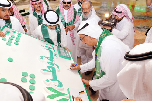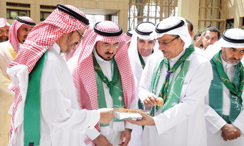 احتفلت جامعة الملك سعود باليوم الوطني بحضور معالي مدير الجامعة أ.د.بدران العمر ووكلاء الجامعة وعمداء الكليات وعدد من أعضاء هيئة التدريس حيث رفع معاليه العلم السعودي إيذانًا بانطلاق فعاليات الحفل.