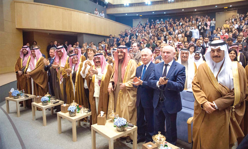 حضر حفل الجامعة، صاحب السمو الأمير خالد بن فهد بن خالد وصاحب السمو الملكي الأمير منصور بن سعود بن عبدالعزيز وصاحب السمو الملكي الأمير محمد بن فهد بن عبدالعزيز وصاحب السمو الملكي الأمير سعود بن فهد بن عبدالعزيز وصاحب السمو الملكي الأمير طلال بن سعود بن عبدالعزيز وصاحب السمو الأمير خالد بن سعد بن فهد وصاحب السمو الملكي الأمير خالد بن بندر بن عبدالعزيز مستشار خادم الحرمين الشريفين وصاحب السمو الملكي الأمير الدكتور منصور بن متعب بن عبدالعزيز وزير الدولة عضو مجلس الوزراء مستشار خادم الحرمين الشريفين وصاحب السمو الأمير فهد بن عبدالله بن عبدالعزيز بن مساعد وصاحب السمو الأمير تركي بن عبدالله بن محمد مستشار خادم الحرمين الشريفين، وصاحب السمو الملكي الأمير سطام بن سعود بن عبدالعزيز وصاحب السمو الملكي الأمير خالد بن تركي بن عبدالعزيز، وصاحب السمو الملكي الأمير تركي بن محمد بن فهد بن عبدالعزيز المستشار في الديوان الملكي وصاحب السمو الملكي الأمير سعود بن سلمان بن عبدالعزيز وصاحب السمو الملكي الأمير تركي بن سلمان بن عبدالعزيز وصاحب السمو الملكي الأمير عبدالله بن خالد بن سلطان بن عبدالعزيز المستشار في الديوان الملكي وصاحب السمو الملكي الأمير سلمان بن سلطان بن سلمان بن عبدالعزيز وصاحب السمو الملكي الأمير نايف بن سلمان بن عبدالعزيز وصاحب السمو الملكي الأمير عبدالمجيد بن عبدالإله بن عبدالعزيز وصاحب السمو الملكي الأمير راكان بن سلمان بن عبدالعزيز، وأصحاب المعالي الوزراء.