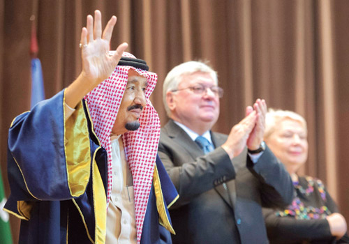تسلم خادم الحرمين الشريفين الملك سلمان بن عبدالعزيز آل سعود - حفظه الله - أمس شهادة الدكتوراه الفخرية من جامعة موسكو الحكومية للعلاقات الدولية. جاء ذلك خلال تشريفه - رعاه الله - حفل جامعة موسكو الحكومية للعلاقات الدولية بهذه المناسبة.