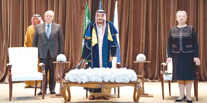 ثم تسلم خادم الحرمين الشريفين، شهادة الدكتوراه الفخرية من مدير الجامعة. وتعد جامعة موسكو الحكومية للعلاقات الدولية من أكبر ثلاث مؤسسات تعليمية في روسيا حيث تأسست عام 1944م، وتضم حالياً 8 كليات وثلاثة معاهد، وبلغ إجمالي عدد الطلاب الذين درسوا بالجامعة منذ تأسيسها حتى الآن 60 ألفًا منهم 5500 من الطلاب الأجانب الذين ينتمون إلى 60 دولة.