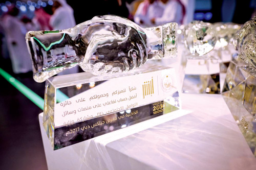 فازت صحيفة «الجزيرة» بجائزة أفضل حساب تفاعلي على منصات وسائل التواصل الاجتماعي المقدمة من وزارة الداخلية، خلال مشاركتها في أسبوع جيتكس للتقنية 2017، على تميزها في تغطية مشاركة وزارة الداخلية في معرض جيتكس الذي أقيم خلال الفترة من 8 حتى 12 أكتوبر الحالي بدبي.