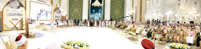 وأكد وزير الشؤون الإسلامية والدعوة والإرشاد المشرف العام على المسابقة الشيخ صالح بن عبدالعزيز آل الشيخ في كلمة له في الحفل أن هذه المسابقة القرآنية العريقة تمثل توجُّه المملكة العربية السعودية؛ فقد أسست هذه البلاد على التوحيد والسنة، ومنهج السلف الصالح، وقامت بلادنا المباركة على يد المؤسس الملك الصالح عبدالعزيز بن عبدالرحمن - رحمه الله تعالى - باتخاذ القرآن الكريم منهجًا ودستورًا، والتمسك بهدايته، والعمل به في كل مناحي الحياة، وهذا ما تميزت به هذه البلاد حتى هذا العهد الزاهر عهد خادم الحرمين الشريفين الملك سلمان بن عبدالعزيز -حفظه الله تعالى-. وقدم معاليه التهاني الصادقة لجميع الفائزين في المسابقة.