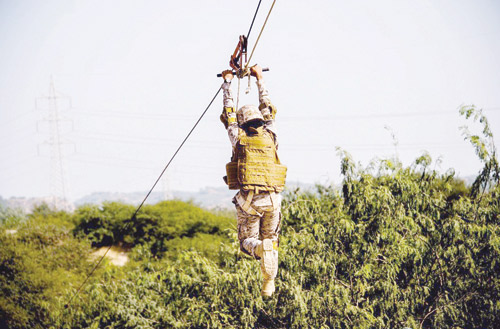 انطلقت في الجمهورية الباكستانية الإسلامية التمرين السعودي الباكستاني المشترك (الصمصام 6) بحضور قائد التمرين العميد الركن محمد بن عبدالله البقمي وعدد من القيادات العسكرية الباكستانية. وقد بدأ التمرين بعزف السلام الملكي السعودي والسلام الوطني الباكستاني، ثم عرض للقوات المشاركة في التمرين. وأوضح العميد البقمي اكتمال وجاهزية واستعداد القوات المشاركة لخوض غمار هذا التمرين، حيث وضعت جميع الخطط الاستراتيجية والميدانية لمراحل تنفيذه لضمان نجاحه» مشيراً إلى أن التمرين سوف يشتمل على التدريب على تقنيات الحرب في المناطق المدنية إضافة إلى مهارات مكافحة الإرهاب وعمليات الحرب غير النظامية، وعمليات الإنزال بالطائرات العمودية وكشف العبوات المبتكرة وإبطال مفعولها. كما انطلقت امس في جمهورية باكستان الاسلامية مناورات تمرين مركز التفوق الجوي لعام 2017م بين القوات الجوية الملكية السعودية والقوات الباكستانية والقوات الجوية التركية المشاركة بكامل أطقمها، يتقدمهم قائد التمرين العقيد الطيار الركن عبدالعزيز الحصيني وبرفقته العقيد أزمان قائد مدرسة الحرب الجوية ومدير التمرين. وقال العقيد أزمان: سعيد بتواجد القوات الجوية السعودية بكامل أطقمها في التمرين الأول للقوات الجوية السعودية في باكستان، ويهدف هذا التمرين إلى تطوير المهارات بأداء عدد من الحركات التكتيكية الجوية. فيما أوضح العقيد الطيار الحصيني أن هذا التمرين يهدف إلى تبادل الخبرات واكتساب المهارات بين القوات الجوية المشاركة والاستفادة من تضاريس المنطقة والأجواء، متمنياً أن يحقق هذا التمرين الجهد والعطاء وما تتطلع إليه قيادتنا الحكيمة أيدها الله تحت رعاية واهتمام من خادم الحرمين الشريفين الملك سلمان بن عبدالعزيز آل سعود القائد الأعلى لكافة القوات العسكرية وسمو ولي عهده الأمين -حفظهما الله-.