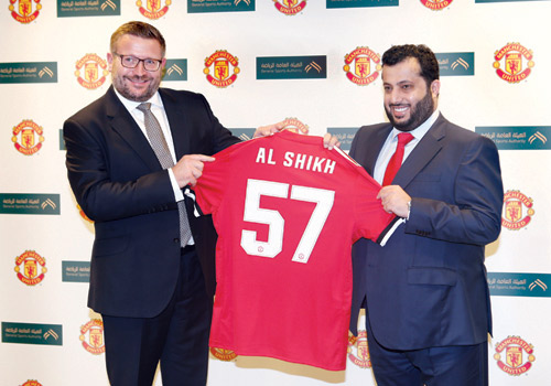 وقع معالي رئيس مجلس إدارة الهيئة العامة للرياضة الأستاذ تركي بن عبدالمحسن آل الشيخ مذكرة تفاهم مع نادي مانشستر يونايتد الإنجليزي تهدف إلى تطوير صناعة كرة القدم في المملكة والاستفادة من الخبرات الإنجليزية الطويلة في هذه اللعبة ذات الشعبية الواسعة. وقد تمت مراسم التوقيع أمس في العاصمة البريطانية لندن مع الرئيس التنفيذي لنادي مانشستر يونايتد الإنجليزي السيد / ريتشارد أرنولد، وتضمنت مذكرة التفاهم إنشاء عدد من الأكاديميات في المملكة لرعاية المواهب وتطويرها وفقاً لأحدث مفاهيم الاحتراف والأسس العلمية لإعداد جيل من اللاعبين القادرين على الاحتراف في أكبر الدوريات الأوروبية والعالمية، مما يسهم في رفع مستوى كرة القدم السعودية وتطويرها لضمان الظهور بأفضل المستويات في المحافل القارية والدولية، كما تضمنت مذكرة الاتفاق وضع برنامج إعداد وتدريب متخصص للكوادر التدريبية السعودية لرفع كفاءتهم وتطوير قدراتهم في هذا المجال. وأشارت المذكرة الموقعة بين الهيئة العامة للرياضة والنادي الإنجليزي إلى نقل كافة جوانب المعرفة والتقنية إلى الكوادر السعودية الشابة بهدف تهيئتها بشكل احترافي للعمل في الأندية السعودية.