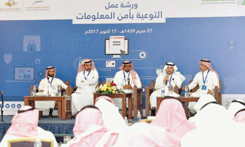 بدأت الورشة التي افتتحها المدير العام لبرنامج يسر المهندس عبدالعزيز الشعيبي بكلمة، رحَّب فيها بالحضور، وقال: «إن هذه الورشة يسعى من خلالها برنامج التعاملات الحكومية الإلكترونية لزيادة وتعزيز الوعي بأمن المعلومات في القطاعات الحكومية». وشكر جامعة المجمعة على تعاونها في إقامة هذه الورشة التي شارك فيها عدد كبير من مديري تقنية المعلومات في القطاعات الحكومية. وبدأت ورقة العمل الأولى التي كانت بعنوان «التهديدات الإلكترونية» بإلقاء الدكتور وليد الفهيد من مركز المعلومات الوطني، أما الجلسة الثانية فكانت بعنوان «الاختراقات الأمنية».. أمثلة من الواقع، مثال من القطاع الحكومي وآخر من المصرفي، واشتملت على ثلاث أوراق علمية، ألقاها كل من المهندس متعب الحربي من مصرف الإنماء والمهندس صقر الحارثي من البنك العربي الوطني والمهندس خالد الفهيد من مركز المعلومات الوطني.
