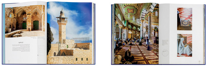 ولم يتوقف الأمر على ذلك، ففي الكتاب حديث عن المسجد الأقصى المبارك من نواحي فنية وهندسية ومعمارية ارتبطت مع كل صورة، وكأنك في عرض مرئي أو ثلاثي الأبعاد تتجول من خلاله بين جنبات المسجد الأقصى وحرمه الشريف وبين معالمه التاريخية الخالدة.