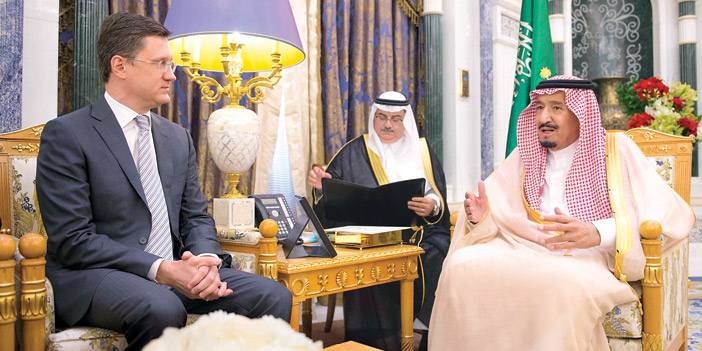 استقبل خادم الحرمين الشريفين الملك سلمان بن عبدالعزيز آل سعود -حفظه الله- في مكتبه بقصر اليمامة بالرياض أمس، معالي وزير الطاقة في روسيا الاتحادية رئيس الجانب الروسي في اللجنة السعودية الروسية المشتركة الكسندر نوفاك. وتم خلال الاستقبال، استعراض العلاقات الثنائية والدور المهم للجنة السعودية الروسية المشتركة في تطوير وتعزيز التعاون بين البلدين الصديقين في مختلف المجالات. حضر الاستقبال، معالي وزير الدولة عضو مجلس الوزراء الدكتور إبراهيم بن عبدالعزيز العساف، ومعالي وزير التجارة والاستثمار رئيس الجانب السعودي في اللجنة السعودية الروسية المشتركة الدكتور ماجد بن عبدالله القصبي، ومعالي وزير الخارجية الأستاذ عادل بن أحمد الجبير، ومعالي محافظ الهيئة العامة للاستثمار المهندس إبراهيم بن عبدالرحمن العمر، وسفير روسيا الاتحادية لدى المملكة سيرجي كوزلوف.