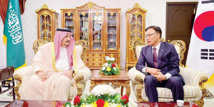 من جهة ثانية شرف صاحب السمو الملكي الأمير فيصل بن بندر بن عبدالعزيز أمير منطقة الرياض مساء أمس، حفل سفارة جمهورية كوريا الجنوبية بمناسبة ذكرى اليوم الوطني لبلادها وذلك في منزل السفير بحي السفارات. وكان في استقبال سموه لدى وصوله مقر الحفل سفير جمهورية كوريا الجنوبية لدى المملكة كوّن بيونغ أو وأعضاء السفارة. حضر الحفل وكيل وزارة الخارجية لشؤون المراسم عزام القين وأعضاء السلك الدبلوماسي المعتمدين لدى المملكة.