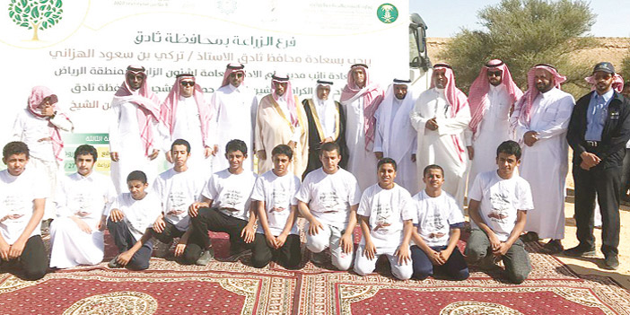 دشَّن محافظ ثادق تركي بن سعود الهزاني حملة التشجير بمتنزهات ثادق والتي بدأت بمرحلة أولى لزراعة 20 ألف شتلة في كل من متنزه عبيثران وشعيب الصفرات ومتنزه الخريمة. وقد بدأ الحفل الذي نظمه فرع الزراعة بثادق بالتقديم ثم القرآن الكريم بعدها كلمة محافظ ثادق نوَّه فيها بالجهود التي تبذل لزراعة الأشجار ورعايتها بالمتنزهات، بعدها كلمة لنائب مدير الإدارة العامة بمنطقة الرياض م . إبراهيم البداح ثم قصيدة للشاعر عبد الله الدريهم، قدم بعدها نائب رابطة ثادق الخضراء فهد المفرج كلمة عن أهمية الغطاء النباتي والمحافظة عليه وزيادة التشجير في المحميات، ثم ألقيت بعض القصائد الشعرية، ثم سلم محافظ ثادق شهادة شكر وتقدير لحارس محمية عبيثران حمد الماجد على جهوده في الحماية، دشن بعدها محافظ ثادق التشجير بزراعة أول شتلة في متنزه عبيثران بحضور المهندس إبراهيم البداح نائب مدير الإدارة العامة بمنطقة الرياض ومدير الموارد البشرية بالإدارة العامة للشؤون الزراعية بمنطقة الرياض الفني الزراعي إبراهيم العريفي ومدير فرع زراعة ثادق المهندس عبد المجيد التركي وعدد من المسؤولين والمواطنين وطلاب المدارس، حيث استمرت عمليات التشجير بعد التدشين من الجميع. يذكر أن بلدية ثادق أسهمت بجهد كبير في التشجير والإعداد بتسخير عمالتها ومعداتها لضمان نجاح الحملة.
