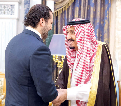 استقبل خادم الحرمين الشريفين الملك سلمان بن عبد العزيز آل سعود -حفظه الله- في مكتبه بقصر اليمامة أمس دولة رئيس وزراء لبنان السابق سعد الحريري.