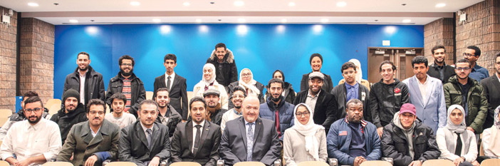 كما شكر سعادة الملحق أعضاء نادي الطلبة السعوديين في تورنتو على الجهد الذي بذلوه لترتيب هذا اللقاء وعلى ما يبذلونه من جهد في خدمة زملائهم الطلبة. بعد ذلك قام الملحق بالإجابة على أسئلة المبتعثين واستفساراتهم ومناقشة ما طرحوه من موضوعات تهمهم، ووعدهم بالعمل على تذليل كافة العقبات التي تواجه مسيرتهم الأكاديمية والتعليمية.