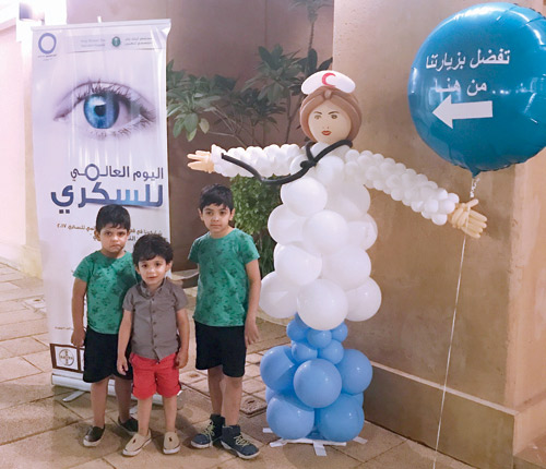 أقام مستشفى الملك خالد التخصصي للعيون ممثلاً بقسم التوعية الصحية برنامجاً توعوياً تحت شعار النساء والسكري بمناسبة الاحتفال باليوم العالمي للسكري 2017م، وذلك في منتزه البجيري بالدرعية، حرصا من المستشفى على المشاركة في مثل هذه المناسبات العالمية من أجل رفع مستوى الوعي الصحي لدي أفراد المجتمع عن هذا الداء ومعرفة تأثيره على أغلب أعضاء جسم الإنسان عموما وعلى العين على وجه الخصوص، وأوضح منسق البرامج طبيب مقيم عبدالله الزهراني إنه في هذا اليوم يتم الاحتفاء باليوم العالمي للسكري، حيث يقام هذا البرنامج التوعوي بمشاركة أطباء الزمالة، ويشمل البرنامج إجراء فحوصات شاملة للعين لجميع زوار البرنامج، يبدأ من قياس حدة الأبصار، وأخذ العيوب الانكسارية للعين، وقياس ضغط العين، ونسبة السكر في الدم بمشاركة 17 طبيباً مقيماً، وعدد من الأطباء الأخصائيين والاستشاريين وطلاب الكليات الصحية، كما يشتمل البرنامج على القسم التوعوي الذي يوزع البروشورات، بالإضافة إلى قسم الأطفال وتثقيفهم بالرسومات والكتيبات التلوينية ويختتم البرنامج بالمسابقة التوعوية التي رصدت لها الجوائز القيمة، ويضيف استشاري جراحة طب الشبكية بمستشفى الملك خالد التخصصي للعيون الدكتور حسن الذيبي أنه بمناسبة اليوم العالمي نقوم بإيصال رسالة توعوية ، حيث إن السكر في البداية لا يكون له تأثير سلبي ولكنه يعمل في العين ونلاحظ عند فحص الشبكية اعتلال شبكية العين فمرض السكر صامت، ومريض السكر لا يراعي الفحوصات الدورية التي تكشف اعتلال شبكية العين، وتعريف الأطفال بالسكري وآثاره على العين، وتقول أخصائية التغذية أسماء الهلال تقوم عيادة التغذية بالمشاركة بالتغذية العلاجية حيث نأخذ له الطول والوزن وإرشاد المريض إلى الحمية الغذائية حيث يتم عمل حسابات للزائر. ويقول أخصائي طب وجراحة طب العيون أحمد المهيلب اليوم نتواجد من أجل توعية مرضى السكري بمضاعفات السكري التي تصيب العين، حيث تم تنظيم أكثر من قسم يبدأ بالتسجيل ثم فحص العين ثم أخذ السكر والضغط والعلامات الحيوية بعدها يمر على قسم التغذية بعدها إذا كان المريض مصاب بالسكري يذهب لقسم تصوير الشبكية من خلال تصوير العين حيث تؤخذ صور للشبكية وبعدها تعرض علينا ويتم تحديد إذا كان مريض السكر يعاني من اعتلال الشبكية حيث ينصح بممارسة الرياضة وتقليل وزنه وإذا كان يعاني من مرض الشبكية يحول للمستشفى، كما أن أطفاللسكري يصابون باعتلال الشبكية إذا لم تتابع حالتهم، ويؤكد مدرب الرياضة غازي الزبيري أهمية الرياضة لمريض السكري حيث تنظم عملية نبضات القلب ومعدل السكري في جسم الإنسان السكر وتنزل الأنسولين والتنفس بشكل صحيح وتساعد على عدم الاكتئاب، ويعتبر المشي من أفضل أنواع الرياضة لمريض السكري.