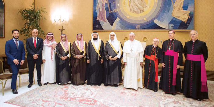 يزور معالي وزير الشؤون الإسلامية والدعوة والإرشاد الشيخ صالح آل الشيخ اليوم بابا الفاتيكان لتقديم الشكر على تصريحاته الإيجابية التي رفض فيها الربط بين الإسلام والعنف، واطلاع بابا الفاتيكان على آخر جهود المملكة في محاربة العنف والتطرف. في هذا الإطار، لم تنقطع الزيارات والحوارات بين الفاتيكان والمسئولين والعلماء في المملكة من خلال طرح قضايا مهمة تتعلق بنبذ العنف والتطرف والإرهاب من خلال حوار الأديان، ولاشك أن هذه اللقاءات أثمرت عن العديد من التفاهمات التي على ضوئها أعطت صورة واضحة عن حقيقة سماحة الدين الإسلامي الوسطي الذي عكس إيجابية هذا الدين وتعامله بين البشر على مختلف مذاهبهم.. ففي عام 1974م كان هناك لقاء رفيع المستوى بين علماء من المملكة بقيادة الشيخ محمد الحركان -رحمه الله-؛ حيث تم زيارة الفاتيكان في عهد الراحل الملك فيصل بن عبدالعزيز -رحمه الله-، وكان الغرض منها نشر سماحة الإسلام والتعريف بأنه دين محبة ورحمة وسماحة، وقد رافق الشيخ الحركان في هذه الزيارة التاريخية كبار المشايخ، وهم: محمد بن جبير، وراشد بن خنين، والشيخ عبدالعزيز المسند، وقد أسفرت الزيارة عن صدور وثيقة تاريخية مع الفاتيكان تحت عنوان: توجهات من أجل حوار شامل بين المسيحيين والمسلمين، وقد ألقى البابا في الفاتيكان كلمة رحب فيها بالوفد السعودي، وقال: أرحب بكم في الفاتيكان وأنتم تأتون من الشرق العزيز على قلب كل مؤمن، ونعرف المسؤوليات الرفيعة التي تسعون إلى تحقيقها في القضايا الدينية والقضائية والثقافية التي تتطلع معها قيادتكم ووطنكم بلد الحرمين الشريفين، مهد الإسلام ومستودع الكثير من القيم الروحية، ونعرف أيضاً أنكم تريدون أن تساهموا بالمساعي الرامية إلى رعاية حقوق الإنسان، وجعلها في المنزلة الرفيعة التي يستحقها، وذلك عملاً بتعاليم الإسلام.