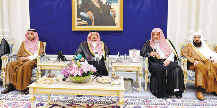 استقبل صاحب السمو الملكي الأمير فيصل بن بندر بن عبدالعزيز أمير منطقة الرياض، بقصر سموه مساء أمس أصحاب السمو الأمراء وأصحاب الفضيلة والمعالي ومنسوبي وزارة الشؤون الإسلامية والدعوة والإرشاد يتقدمهم وزير الشؤون الإسلامية والدعوة والإرشاد الشيخ صالح بن عبدالعزيز آل الشيخ وكبار المسؤولين.