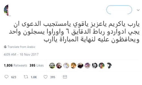 وقتها ظهر على تويتر التاق هذا التاق « #إدواردو_رباط_صليبي «يمكن أن تدرس التعليقات فيه كحالة من حالات التعصب الرياضي ـ كتبت إحداهن معلقة على الصورة: والله تكحلت عيني ! ، فردوا عليها بأن «حرام وعيب ولا تتمني المصيبة وأن الشماتة مذمومة «، فجاء الرد العجيب : « الحلال والحرام على كيفي وعلى هواي» !