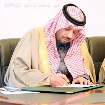 وشهد حفل التدشين مراسم توقيع سمو أمير منطقة الحدود الشمالية مع وزير العمل والتنمية الاجتماعية، لإطلاق برامج التوطين بالمنطقة، التي ستشمل على توطين 12 نشاطاً. وأكد سمو أمير منطقة الحدود الشمالية خلال حفل التدشين أن مذكرة التفاهم التي وقعت تعد ذات أهمية كبرى لأنها تتجاوز الأثر المباشر المتمثل بمعالجة مشكلة البطالة, متوقعاً أن تحقق هذه المبادرة نتائج تنموية إيجابية على مستويات الاقتصاد الكلي، والوعي بمفاهيم وقيم العمل، وعلى مستوى جودة الخدمات المقدمة وعلى مستوى الأمن بالمحصلة, كما ستسهم نتائج هذه المذكرة خفض الضغط على الضمان الاجتماعي, حيث سيتمكن الكثير من أفراد الأسر الضمانية من تحقيق الإيرادات المجزية من خلال العمل في القطاعات التي سيتم توطينها، كما ستدفع نتائج هذه المذكرة للاستغناء عن أعداد كبيرة من العمالة الوافدة ما يؤدي لخفض نسبة التحويلات المالية للخارج، وكذلك خفض الضغط على خدمات البنى التحتية، وكذلك معالجة التركيبة السكانية بخفض نسبة الوافدين إلى المواطنين، وهذه يترتب عليها خفض بنسبة المشكلات الأمنية والثقافية والاقتصادية المرتبطة بهم, متطلعاً إلى بذل جهود استثنائية من الجهات المعنية بتطبيق هذه المذكرة كافة، ومن ذلك اللجان المعنية بالتوطين والتفتيش، لتحقيق أهداف رؤية 2030 وبرنامج التحول 2020 بأبعادها لتعتمد بلادنا بشكل كبير على أبنائها في بناء اقتصادها في القطاعات كافة، ولتجنب مشكلة الانكشاف المهني لأي سبب كان.