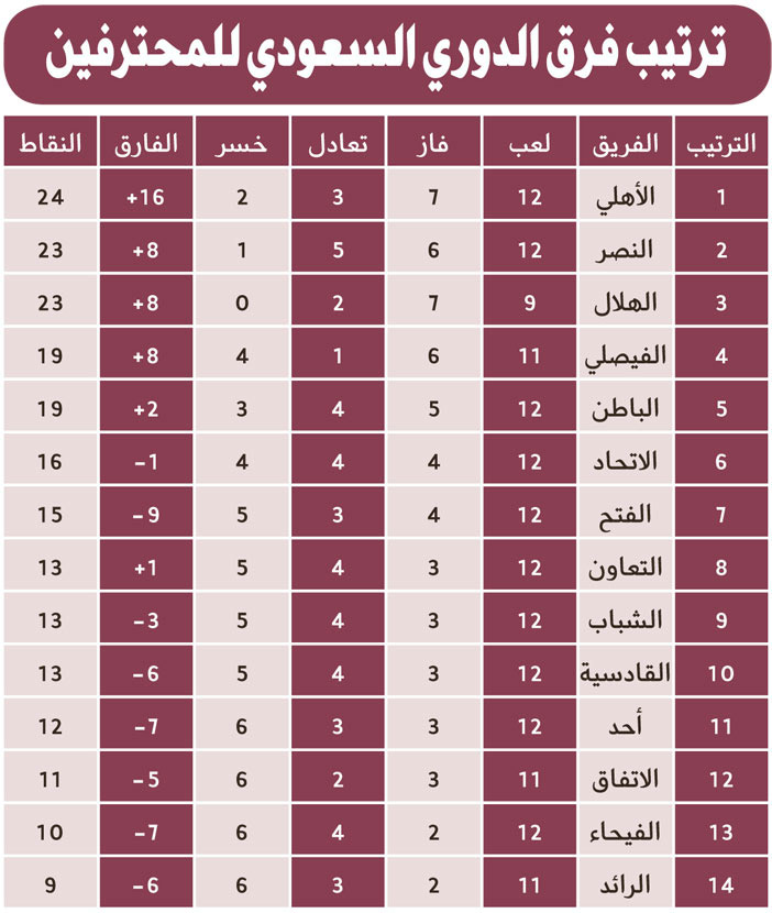 يذكر أن المباراة المقبلة للنصر ستكون أمام مضيفه القادسية، بينما يحل الباطن ضيفاً على الفيحاء.