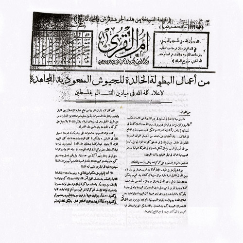 ومن ضمن الصور التي سيبثها حساب الدارة صورة قديمة ونادرة نشرتها أم القرى في 6 / 8 / 1367هـ للملك عبد العزيز يستعرض في الرياض كتائب المجاهدين السعوديين لإنقاذ فلسطين، بحضور سمو ولي عهده الأمير سعود بن عبد العزيز لمشاركة الجيش السعودي في الدفاع عن فلسطين. وصورة في أم القرى يوم الجمعة 22 شوال 1367 هـ خطبة لوزير الدفاع السعودي الأمير منصور بن عبد العزيز في فرقة الجهاد النظامية السعودية بفلسطين، وقائمة الشهداء السعوديين في حرب فلسطين 1367هـ / 1948م، وكذلك صورة لرسالة من القيادة العامة لقوات فلسطين تعزي في 9 شهداء سعوديين في وقعة المزرعة يوم 16 / 2 / 1948م.