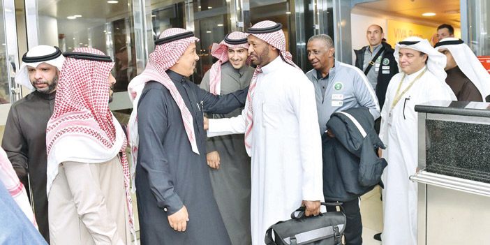 وكان في استقبال البعثة لدى وصولها مطار الكويت الدولي نائب رئيس الاتحاد الكويتي لكرة القدم الشيخ فواز مشعل الصباح، ونائب سفير خادم الحرمين الشريفين لدى دولة الكويت الشقيقة فواز الشبيلي.
